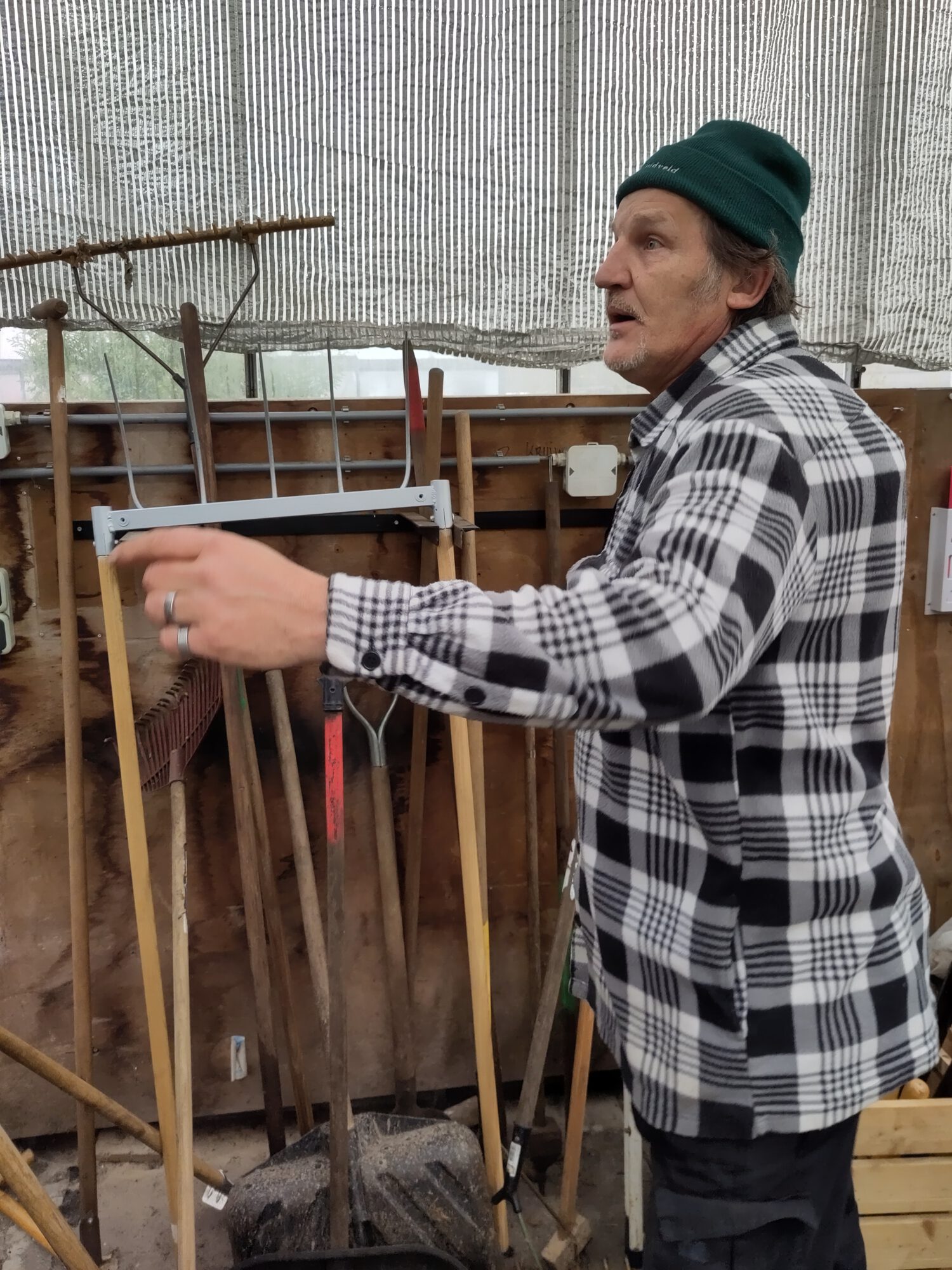 Achterop het terrein van Afeer (bedrijf voor mensen met afstand tot de arbeidsmarkt) liggen meerdere professioneel ingerichte kassen en een grote moestuin. Hier zwaaien Sjon en John de scepter. Bij een bezoek waren wij onder de indruk van de professionele wijze van het opkweken van planten. Niet alleen voor de eigen voedseltuin die levert aan de voedselbank, maar ook bloemen voor bakken van de gemeente. Het gaat allemaal in flinke hoeveelheden en vrijwel het hele jaar door. Voor allerlei werkzaamheden hebben ze ook eigen gereedschap gemaakt. Ook voor mensen die al lang met moestuinen werken kan je daar nog heel wat leren. Alles gaat ecologisch, dus zonder bestrijdingsmiddelen.