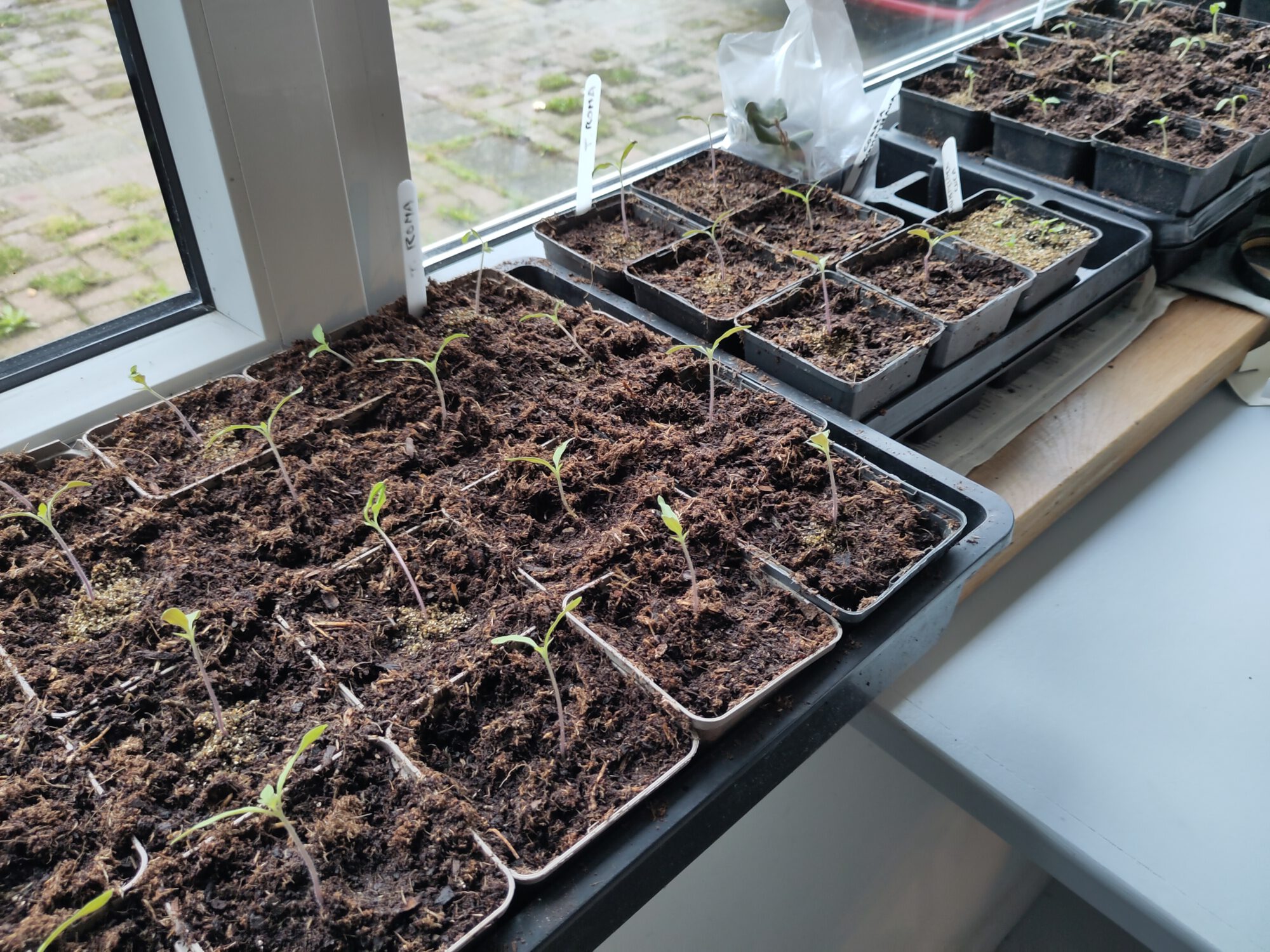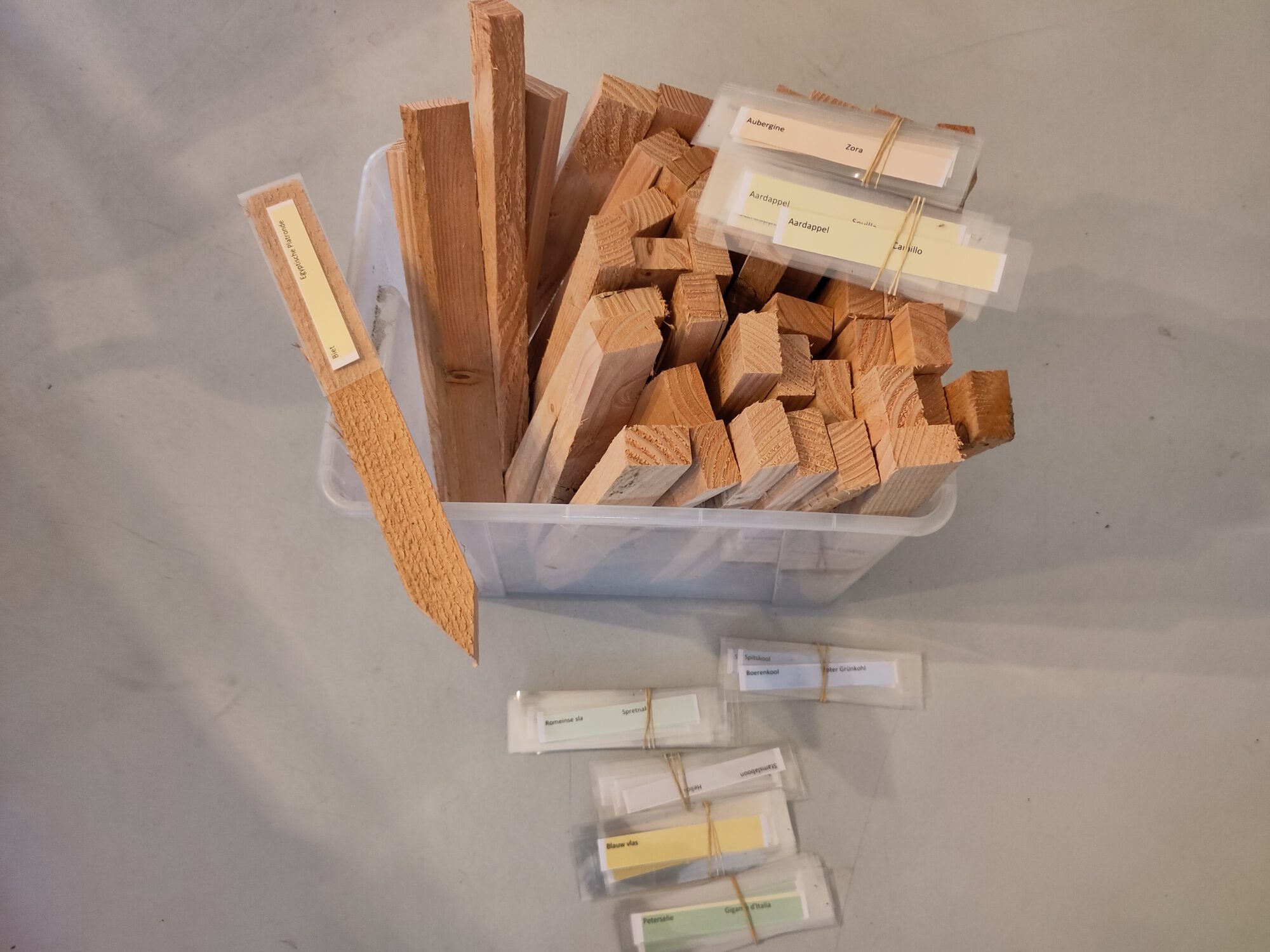 Nog wat voorwerk voor het plantseizoen. En verder natuurlijk genieten van de eerste bloemen buiten. Hopelijk wordt het wat minder nat komende tijd, want de zeer vroege aardappelen zijn al aan het voorkiemen. Ze moeten nu buiten, droog en in het licht wat afharden.