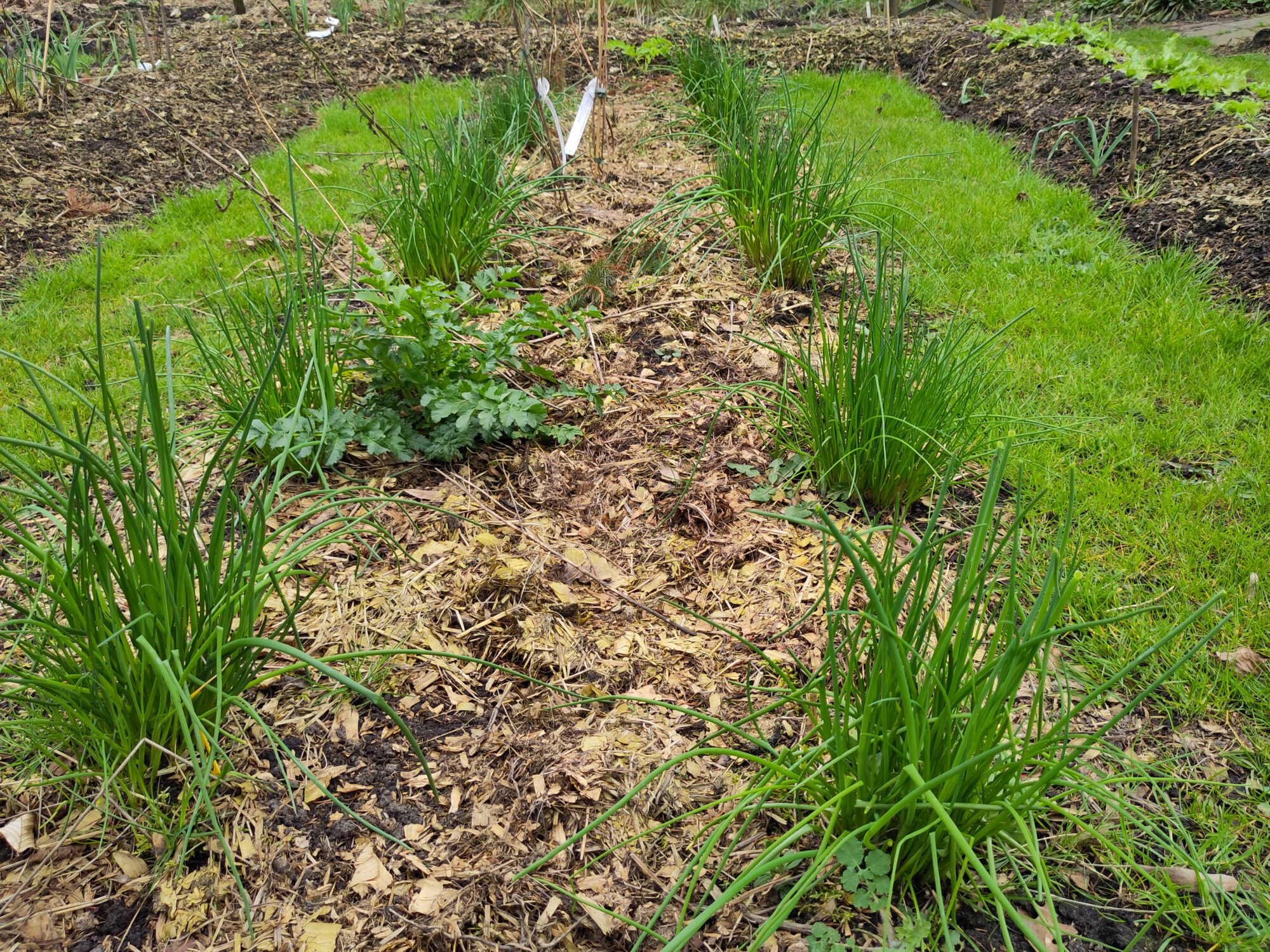 Zolang het niet te hard vriest kan je doorgaan met het klaarmaken van bedden, compost en/of mulch aanbrengen. Ik zie dat de winteruien ruim boven de grond staan en de knoflook een stukje.
