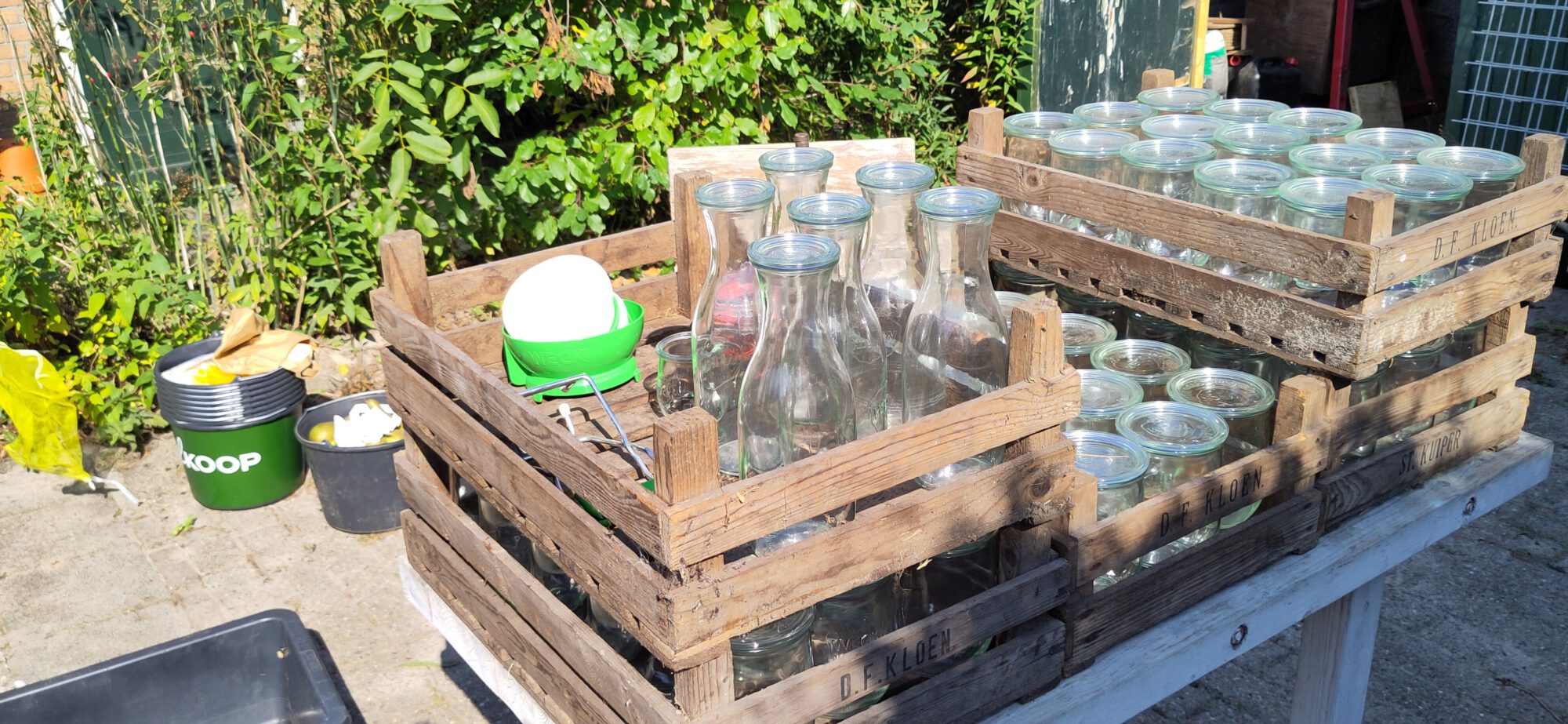 Er zijn nog een tiental weckpotten te koop voor €0,50ct per stuk. Alleen sluithaakjes zelf toevoegen.